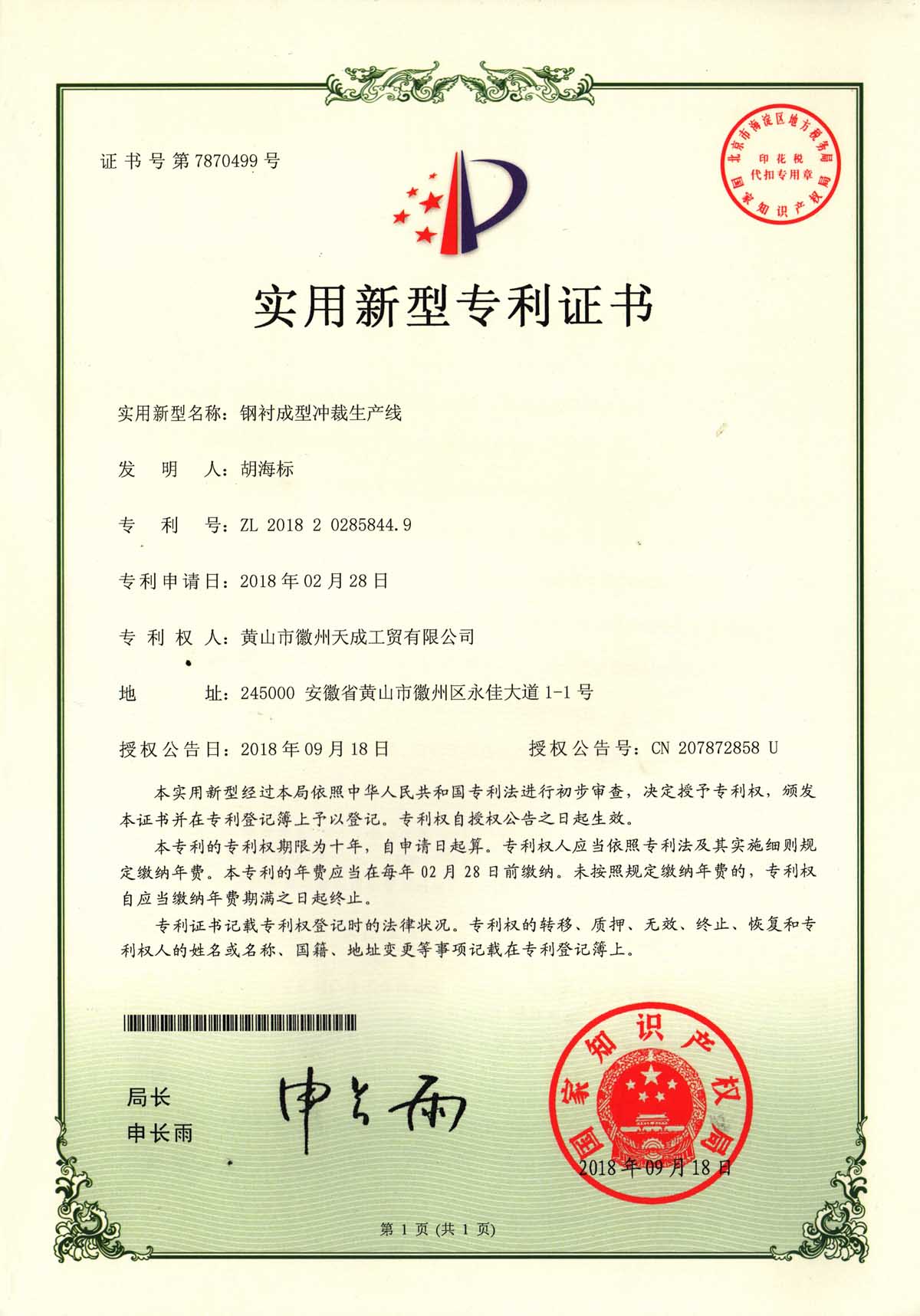 二十年來,天成人一直專注于塑鋼門窗生產(chǎn)制造,從產(chǎn)品性能到生產(chǎn)工藝,從系統(tǒng)管理到設(shè)備研發(fā)。其中”鋼襯成型沖裁生產(chǎn)線“就是天成自主研發(fā)的生產(chǎn)設(shè)備,并獲取了實用新型專利。