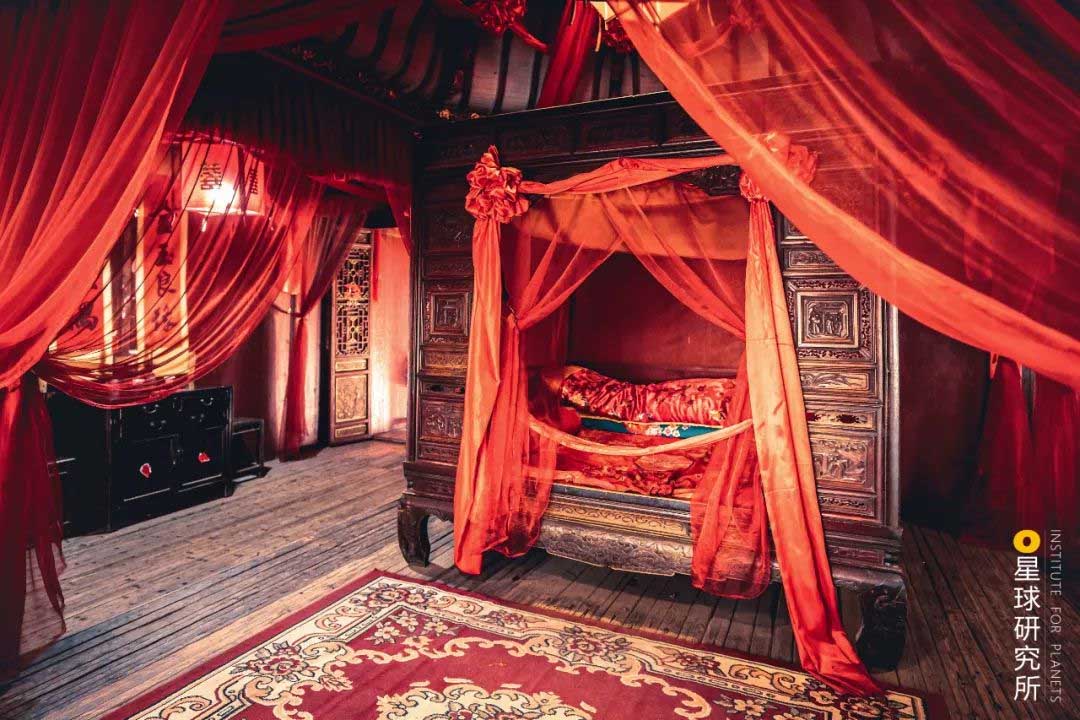 (婺源篁嶺民居中的二樓臥室,被用作婚房,徽州民居其實(shí)經(jīng)歷了一個(gè)漫長(zhǎng)的形成過(guò)程,明代的民居二樓為廳堂,稱“樓上廳”,更多的保留了干欄式建筑的特色,清代的主要廳堂則由二樓轉(zhuǎn)移到一樓,攝影師@鄭哲文)